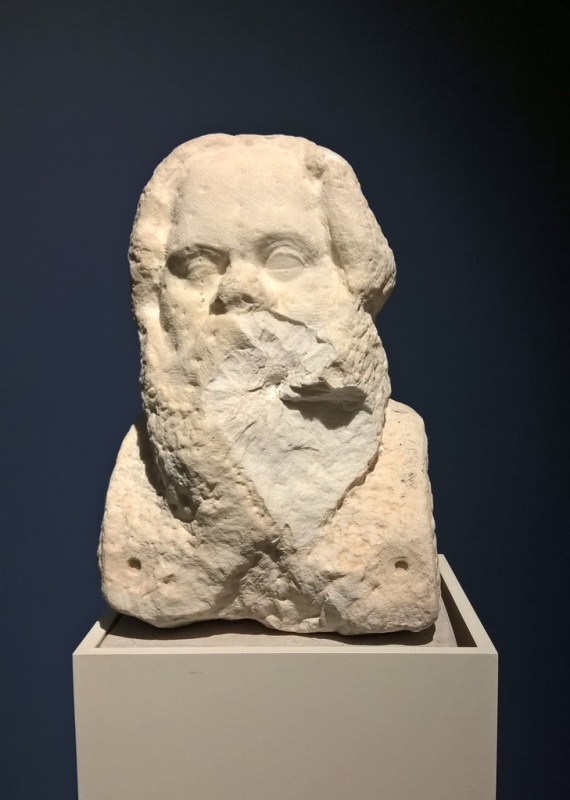 Image: Unfinished bust of Socrates from the Archaeological Museum of Athens. Roman Period