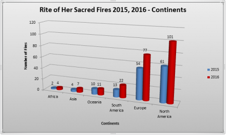 Short version of study of the incidence of the annual international celebration “Rite of Her Sacred Fires” honoring the Goddess Hekate around the world for the years 2015-2016.