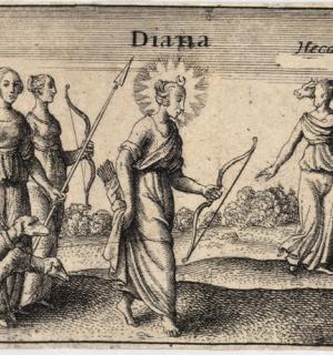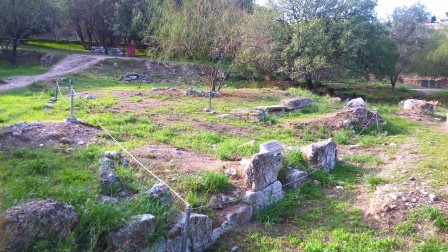 A triangle-shaped open air sanctuary is located just outside the southwest corner of the Agora in Athens. Its position at a crossroad and the triangular shape of its enclosure, the building is indicated to be a shrine of Hekate.
