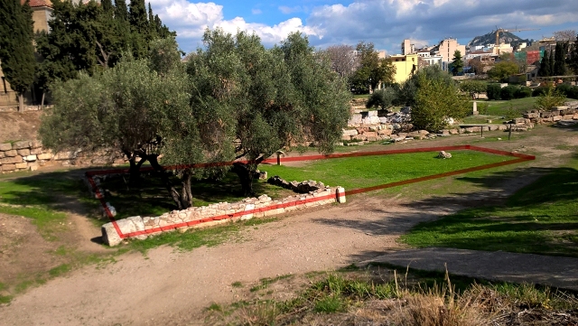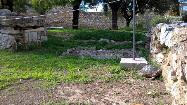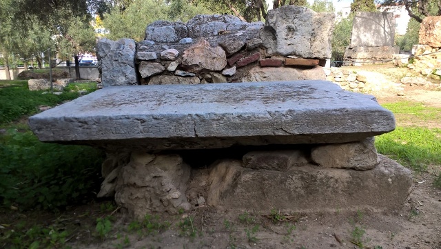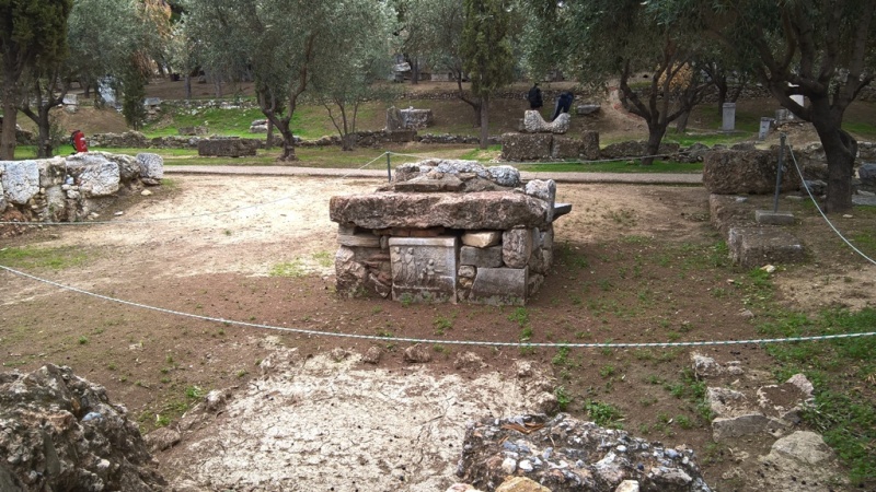 After Tritopatreion there is a mud-brick building. An inscription reveals that it belonged to the family of Alkiviadis. The ashes of his body are in the west side of this building.