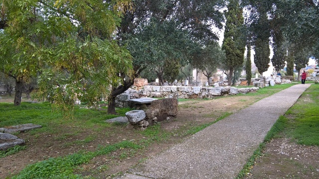This sacred place existed before the 6th century b.C. as it is written in a rock the phrase ΗΙΕΡΟΝ ΤΡΙΤΟΠΑΤΡΕΩΝ. It is in the middle of Hiera (=sacred) Odos (the road to Eleusis)Those three fathers are unknown today, but they might be three sacred dead ancestors. They were worshipped in Kerameikos. Tritopatrion had an abaton, thus not everyone could enter. Their worship was connected with the dead and the graves that surround it.