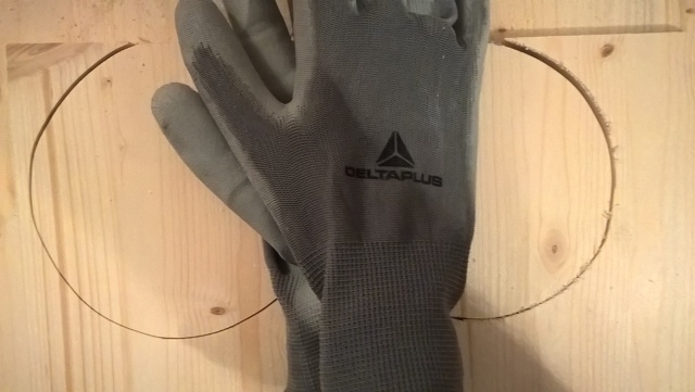 Buy the wood from your local store or ask your woodworker to cut for you circle with 12 cm diameter. If you want to do it by your own, use the jigsaw by adjusting it to cut plastic (no 1) with fast movement for the saw (no 5). The saw should be an appropriate for fine cutting of wood. Make sure you have taken all the protection and the wooden surface is solid and doesn't move as you use the jigsaw. Stability is everything here. Make sure you wear glasses, a hat, gloves and a mask for the dust. Cut as fine as you can the wood and then with the smirdex paper make it smooth and circular. It takes time.