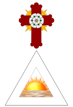 Frater Vota Vita Mea (Pattinson) describes a crowned spirit who gave him a symbol. It consists of three rhombs one vertical in the middle and two horizontals to the sides. This is a symbol which illustrates the primary creation or the union of first causes.